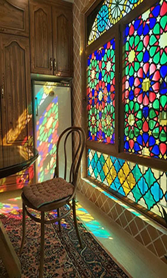 تعریف هنر قواره بری چوب با شیشه های رنگی و اسلیمی سازی